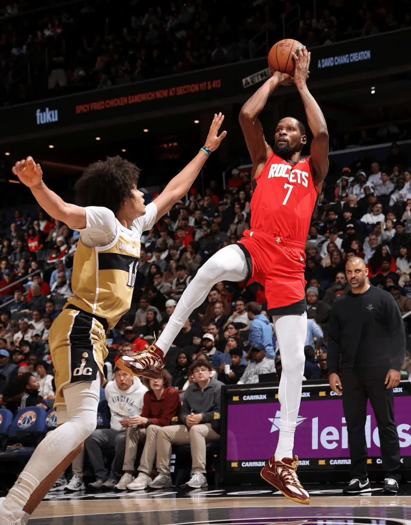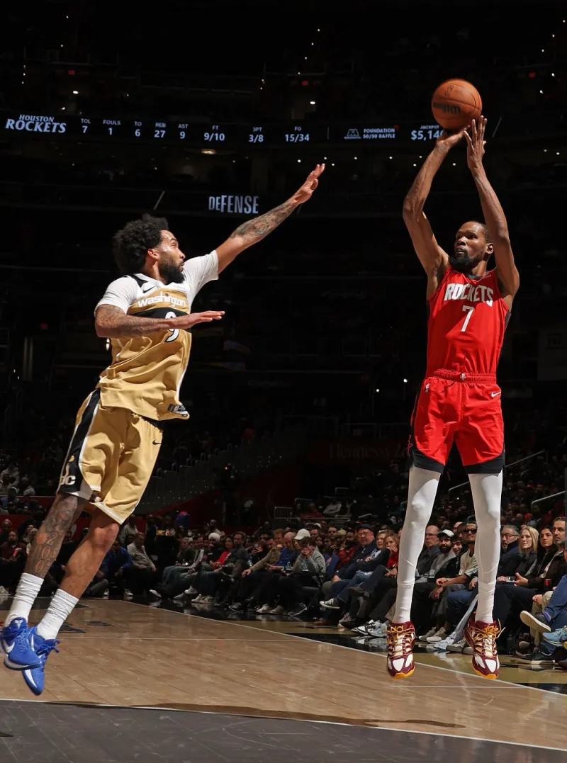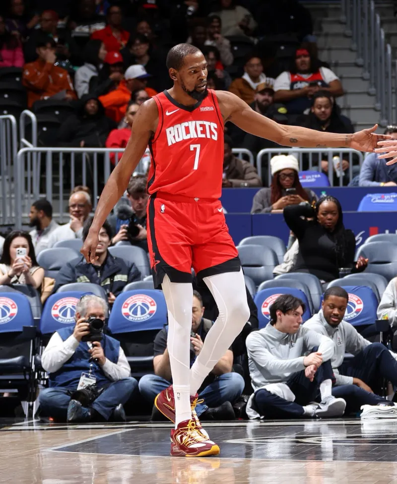 杜兰特穿着华盛顿指挥官配色KD18,得到30分7篮板1盖帽